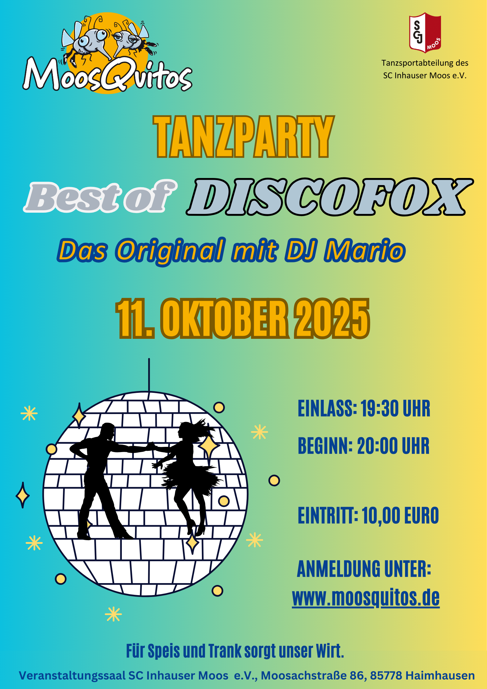 Sie wollen Boogie Woogie, Discofox oder West Coast Swing tanzen und wohnen im Münchner Norden, in Unterschleißheim, Haimhausen oder Dachau? Dann sind wir, die MoosQuitos, vielleicht genau das Richtige für Sie. Als Verein bieten wir regelmäßiges Tanztraining in verschiedenen Leistungsstufen an.