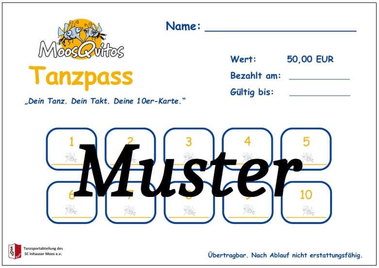 Für TSA-Mitglieder kostenlos, Mitglieder anderer Abteilungen und Nicht-Mitglieder bitte eine Tanzkarte beim Trainer nachfragen.